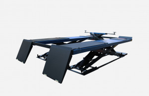 Scissor lifts are primarily characterized by their low space requirement and no significant demands on the floor covering compared to column lifts. The lifting height in the mobile mid-rise scissor lift range is between 70 cm and 120 cm, depending on the version. However, it can also be over 2 meters for permanently installed standard scissor lifts. Higher lifting heights are easily possible, but then the acquisition costs are extremely high. The advantage of a scissor lift is that all sides of the vehicle are accessible. There is absolute door freedom. This makes it particularly suitable for tire changes and body work such as foiling. Oil changes can also be carried out without any problems. It is also more space-saving compared to the column lift due to its more compact design. This also makes it ideal for small spaces and private use.