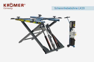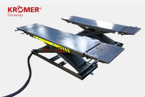 The mid-rise scissor lift is particularly suitable for cars and vans. This type of tire service scissor lift is also the best-selling platform in Germany due to its attractive price. Due to the space-saving design, the scissor lifts from Krömer can also be used in small garages. Because the Krömer mid-rise scissor lifts can reach a lifting height of 1 meter to 1.20 meters without the rubber pads and the majority of the short-stroke scissor lifts can even be used mobile in the workshop. So you can use the scissor lift with the mobile kit in the right corner today, in the left corner tomorrow and outside the day after tomorrow or even at another location without removing anchors or similar.